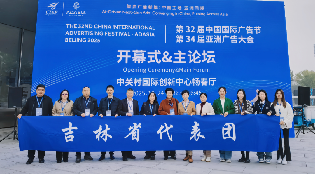 10月24至26日,由中国广告协会、北京市海淀区人民政府、亚洲广告协会联合会主办,为期三天的第32届中国国际广告节与第34届亚洲广告大会在北京海淀中关村国际创新中心圆满落下帷幕。本届盛会以“智启广告新篇:中国主场,亚洲同频”为主题。吉林省市场监督管理厅广告处处长付莉颖、长春市市场监督管理局领导等一行五人、吉林省广告协会会长刘丽、吉林省广告协会副秘书长孙铭阳、长春市广告协会会长陈思权、长春市广告协会秘书长李春兰及吉林省广告企业代表与来自全球30多个国家和地区的逾万名代表共同参会,一同在“科技+文化”双向赋能的国际广告交流新窗口中,学习交流时代赋予广告业的新命题。